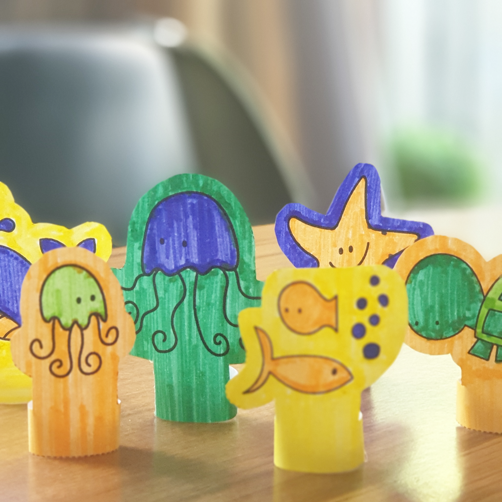 To complete your Under The Sea Finger Puppets you'll need a printer, something to colour them in with such as crayons, colouring pencils or felt tip pens as well as some scissors and cello tape or glue to hold them in place.