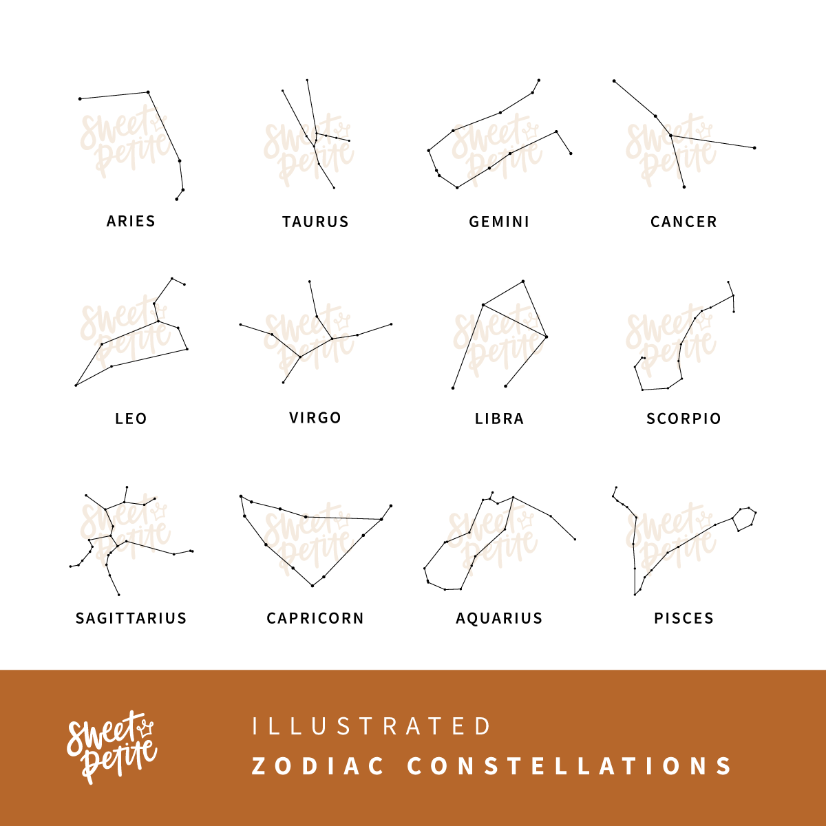 The Astronomer baby birth announcement poster showcases a simple version of your child's zodiac constellation with their names married in a cursive text for their first name and contrasting serif for their middle and last names. A simple, elegant way to document their details that will timelessly grow with their room.